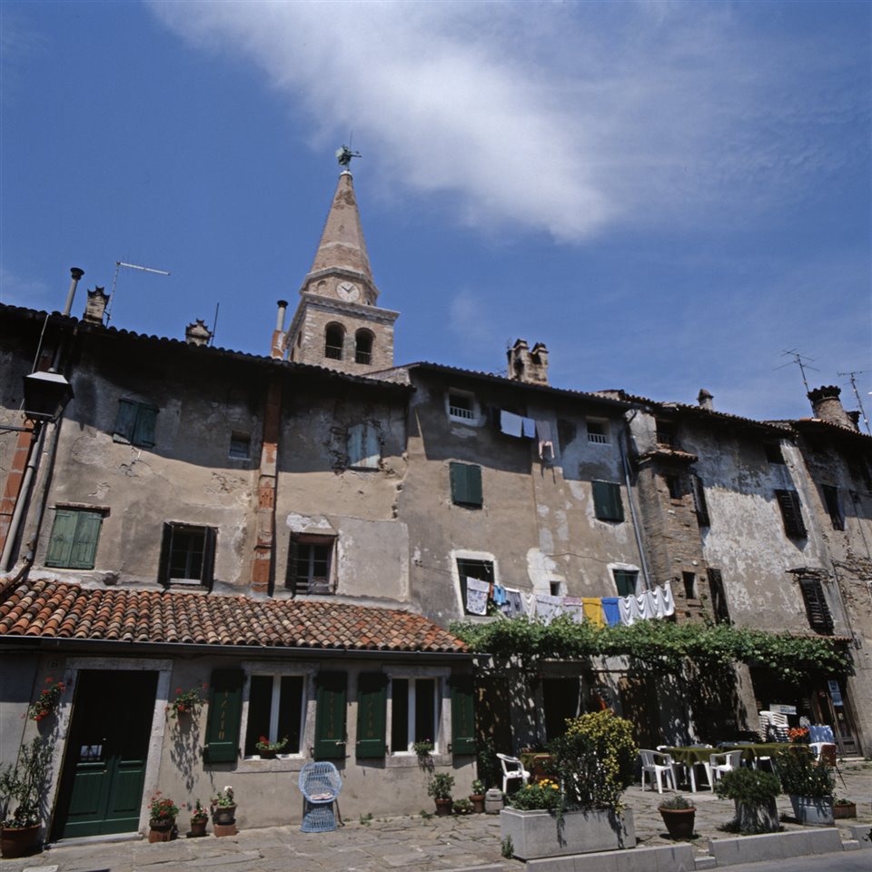 Particolare del centro storico di Grado con via Gradenigo e il campanile della basilica di Santa Eufemia |