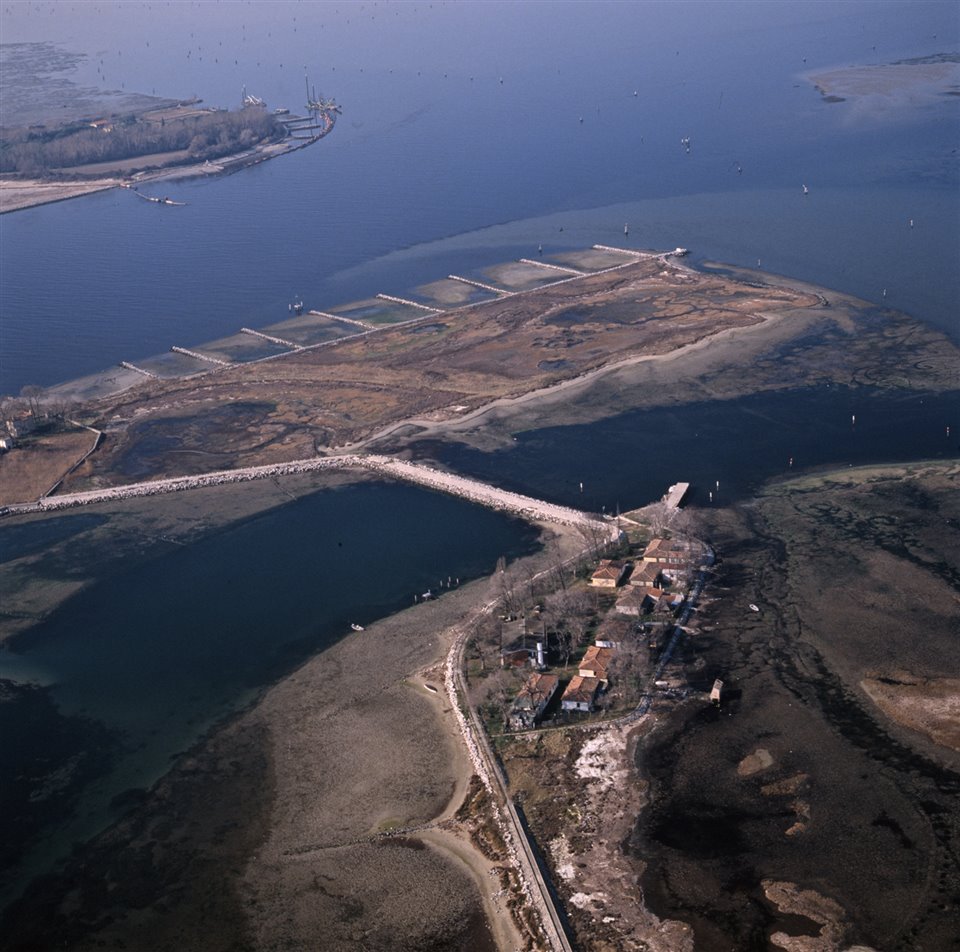 Veduta aerea di Porto Buso e località Anfora nella laguna di Grado di ponente |