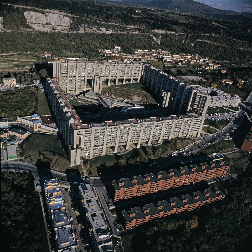 Veduta aerea del quadrilatero di Melara con in primo piano via Carlo Forlanini e sullo sfondo il Carso |