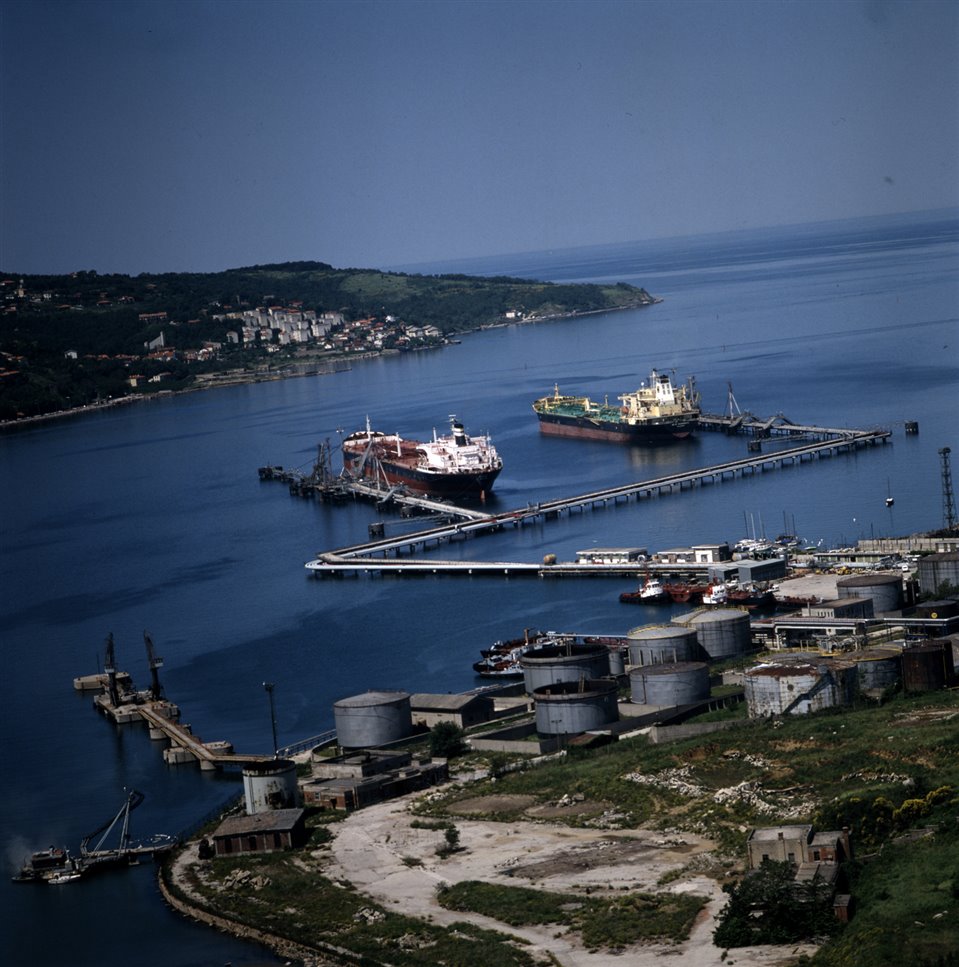Veduta aerea della Siot, sullo sfondo l’abitato di Muggia e il golfo di Trieste |