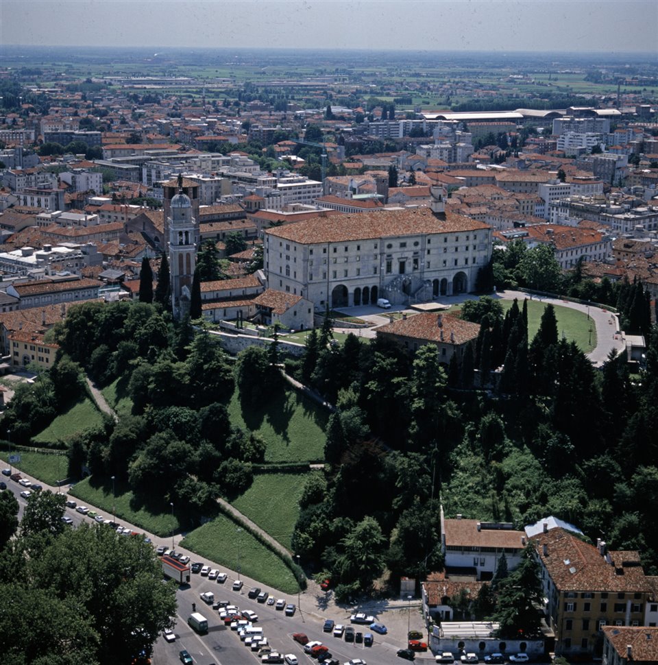Veduta aerea del Castello di Udine e della chiesa di Santa Maria del Castello |