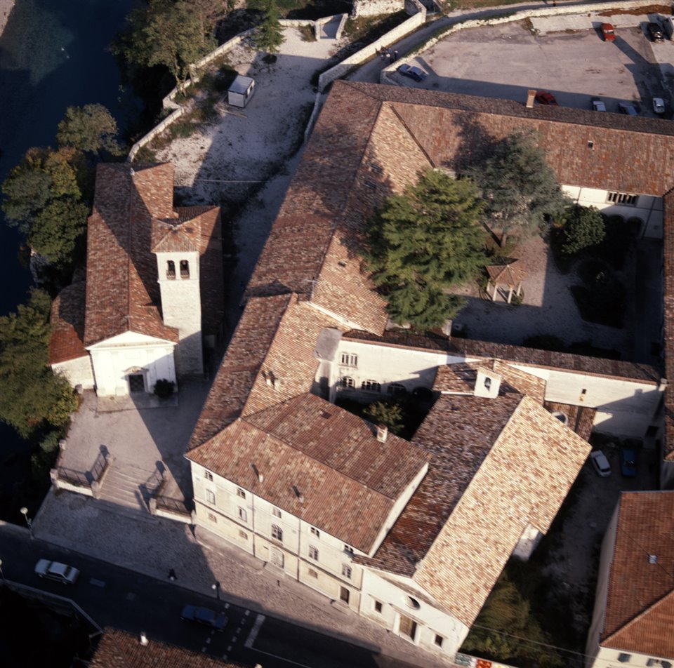 Veduta aerea della chiesa di San Martino, della chiesa sconsacrata Santa Maria dei Battuti e dell’attuale convitto “Paolo Diacono” |
