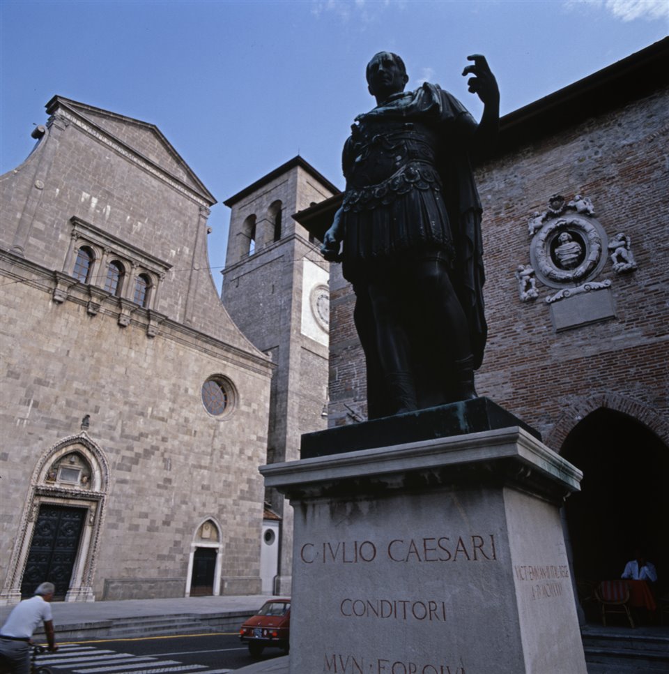 Monumento a Giulio Cesare e sullo sfondo il duomo di Santa Maria Assunta |