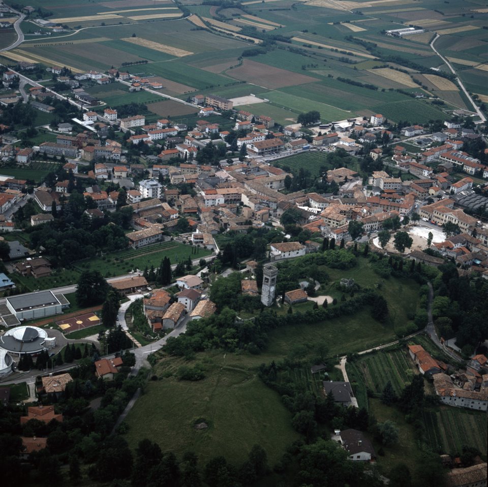 Veduta aerea dell’abitato di Fagagna con in primo piano il Castello di Fagagna |