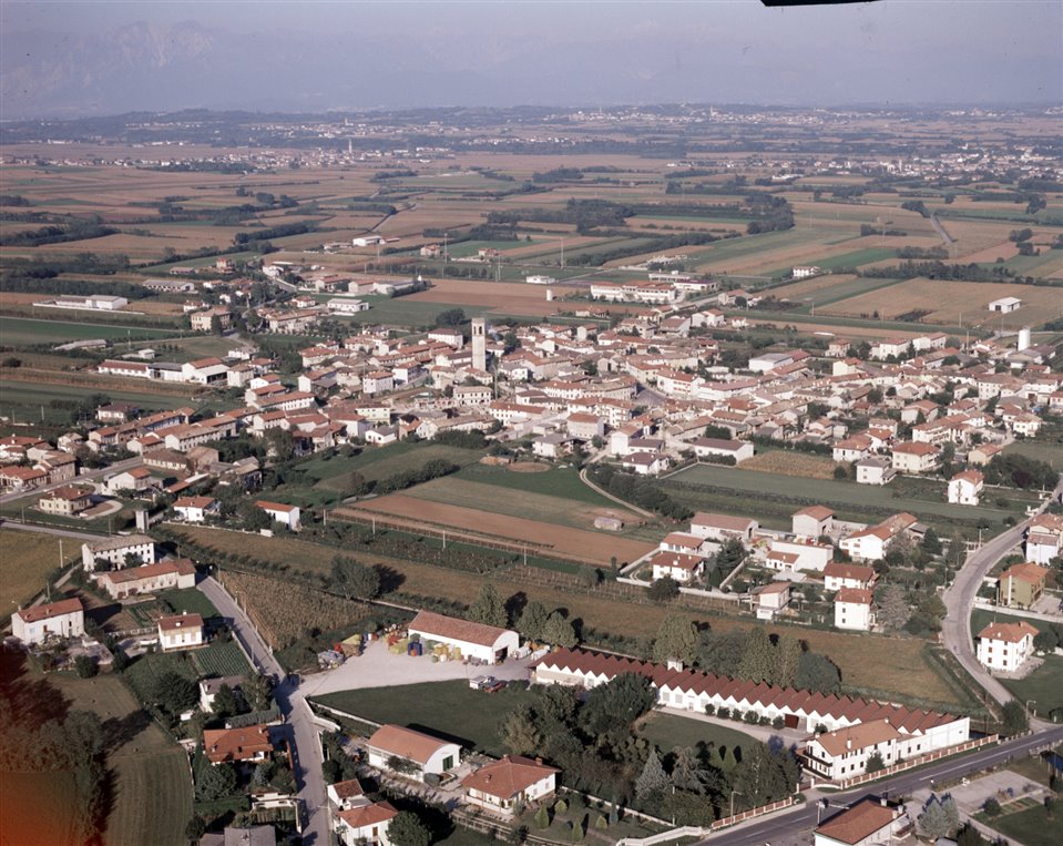 Veduta aerea della frazione di Cisterna nel comune di Coseano con la chiesa di Santa Maria Assunta |