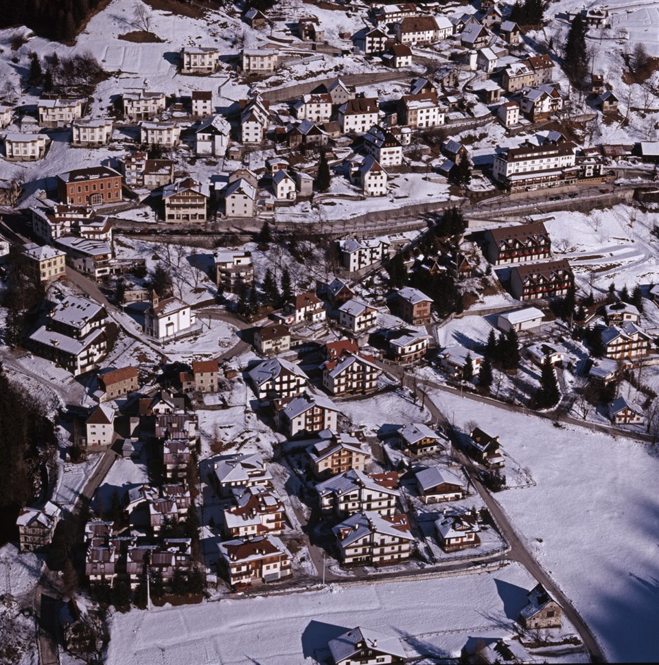 Veduta aerea dell’abitato di Ravascletto con la chiesa di Santo Spirito |