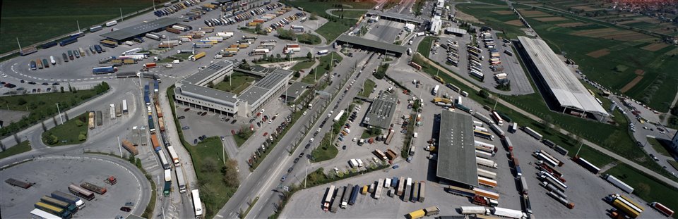 Veduta aerea dell’autoporto di Gorizia con la stazione confinaria S. Andrea |