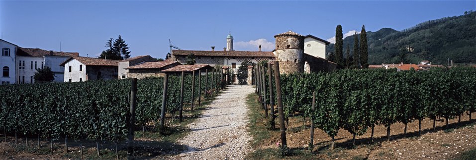 Vigneti e la Casa Neuhaus. In fondo il campanile del Duomo di Sant’Adalberto |
