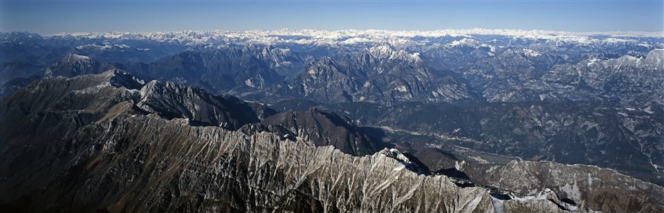 Veduta aerea delle Prealpi Giulie con la catena dei Monti Musi in primo piano |
