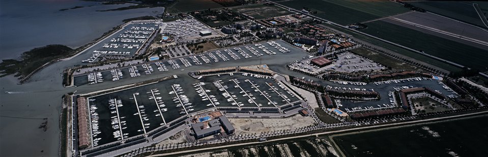 Veduta aerea della frazione di Aprilia Marittima nel comune di Marano Lagunare e del porto turistico |
