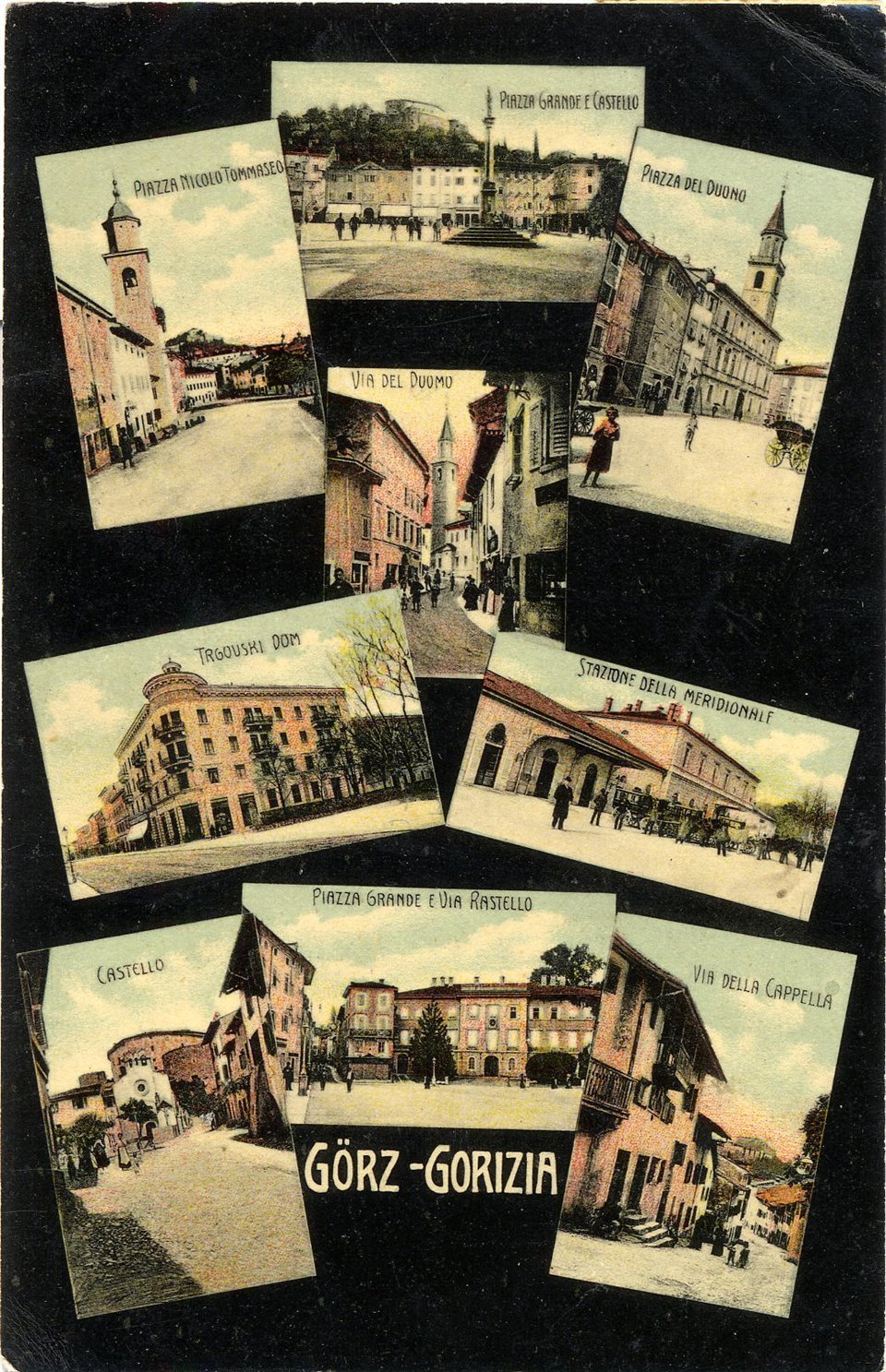 | NOTE | Nove vedute con didascalia: “Piazza Nicolò Tommaseo”, “Piazza Grande e Castello”, “Piazza del Duomo”, “Via del Duomo”, “Trgovski Dom”, “Stazione della Meridionale”, “Castello”, “Piazza Geande e Via Rastello”, “Via della Cappella”. Sul verso: Verlag: A. Jeretič, Görz 3333 k”; “173975” Cartolina viaggiata. |