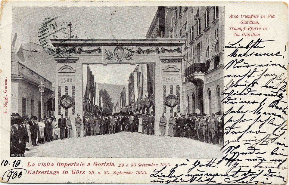 | TITOLO | La visita imperiale a Gorizia 29 e 30 Settembre 1900. Arco trionfale in Via Giardino. |