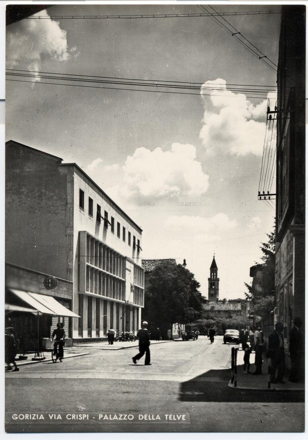 | NOTE | Sul verso: “G. Cumar – Gorizia”; “Vera fotografia – Riproduzione vietata”. Il Palazzo della Telve venne ultimato nel 1952. Cartolina non viaggiata. |