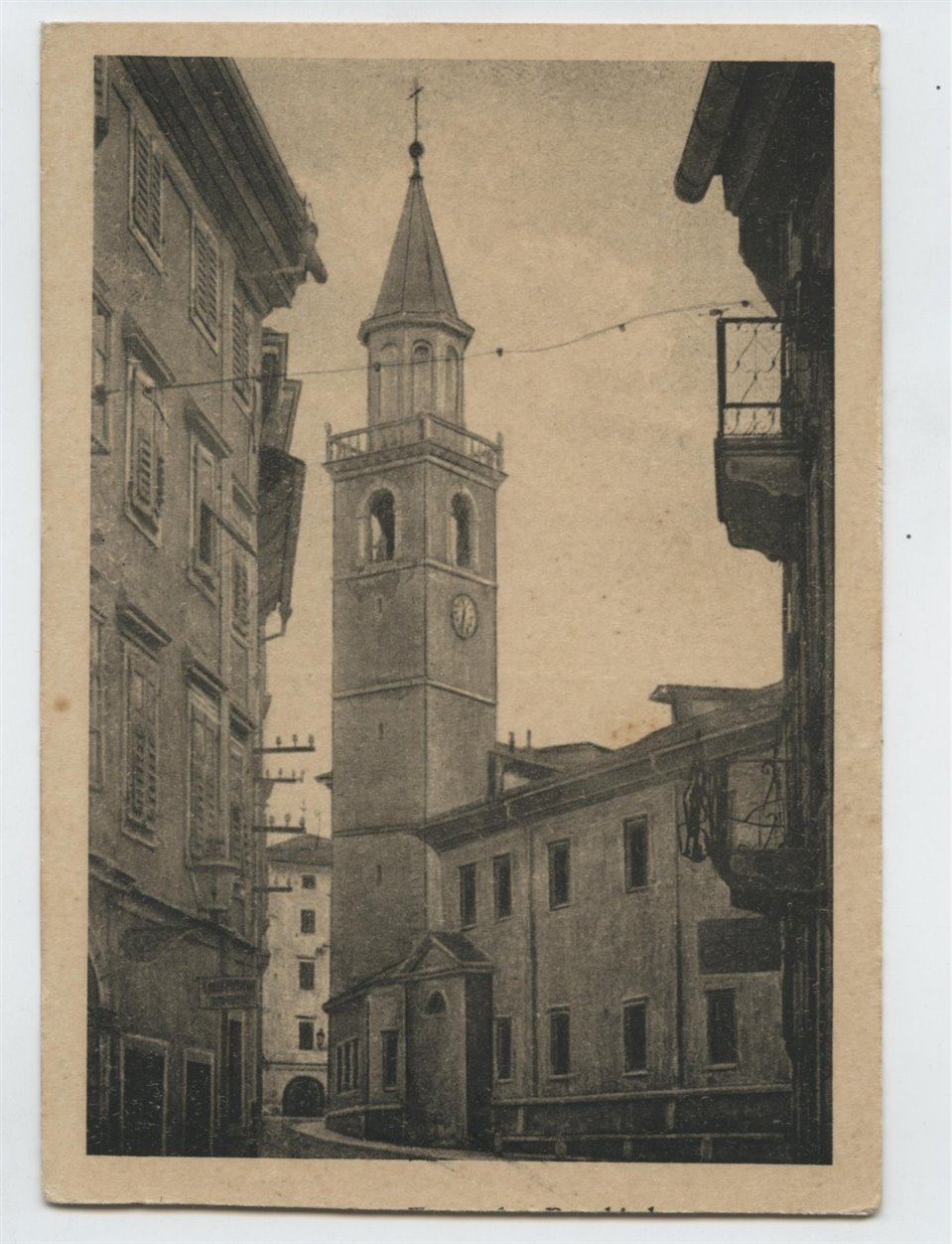 Il titolo è attribuito. Cartolina non viaggiata. La data di edizione della cartolina, che mostra il Duomo e il campanile com'erano prima della Grande Guerra, è presunta. |