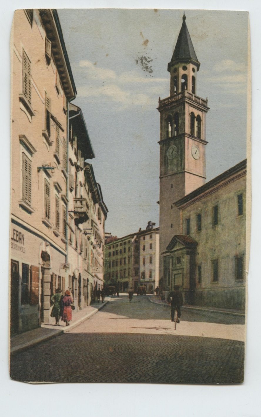campanile|Insegna Leban|bicicletta|donna|uomo|Duomo |