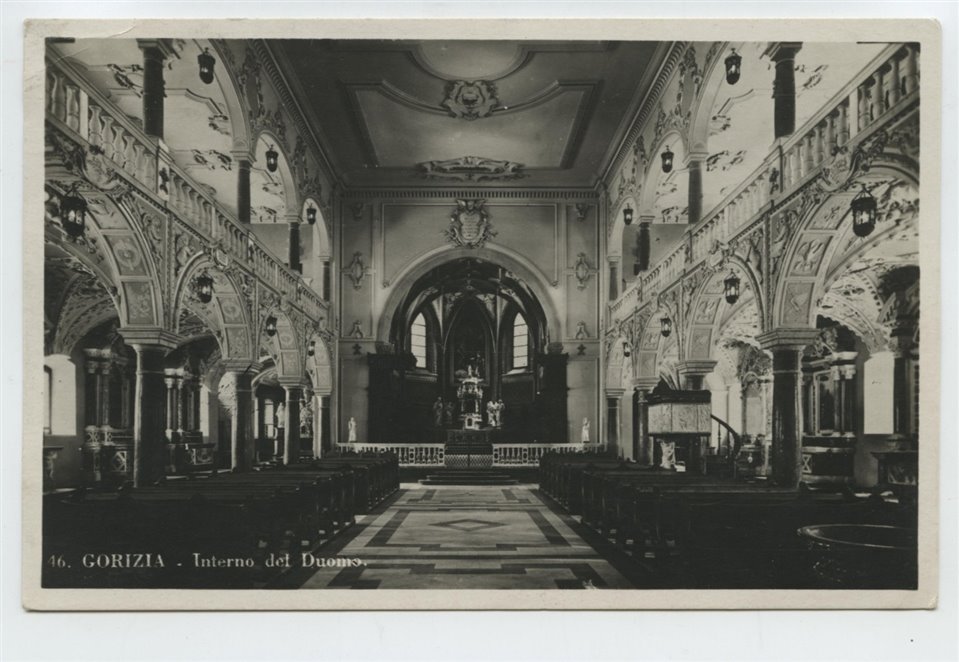 | NOTE | Sul recto, prima del titolo: "46". Sul verso: "E. Wokulat & C. - Gorizia". Cartolina viaggiata da Trieste a Vienna. Data del testo: 08.10.1935. Interno del Duomo dopo la ricostruzione ultimata nel 1928. |