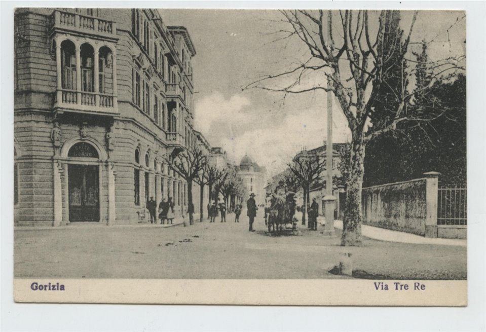 | NOTE | Sul verso: "1348: Verlag Kunst Kartengeschäft A. Pertot Görz". Cartolina viaggiata il 09.11.1919. Dopo la fine del primo conflitto mondiale circolarono cartoline pubblicate precedentemente (cfr. inv. 00242 per una variante del 1906), attraverso le quali si diffondeva l'immagine ancora asburgica di Gorizia. Via Tre Re è qui ripresa dall'imbocco di via dell'Usina. |