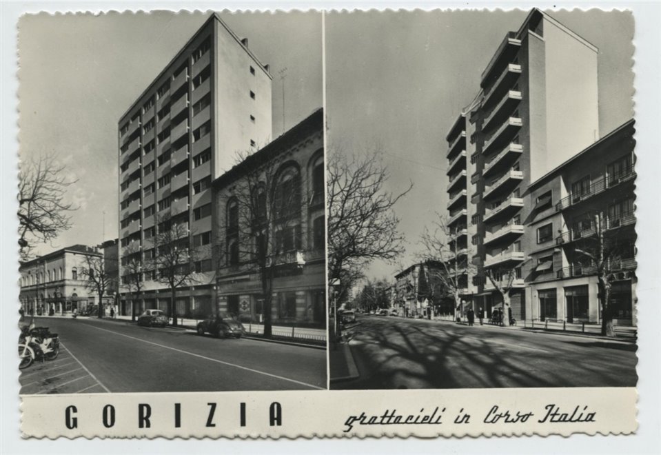 | NOTE | Sul verso: "6 Ed. foto G. Lazzaro - Gorizia"; "[logo] Rotalfoto Milano"; "Riproduzione vietata"; "vera fotografia". Cartolina non viaggiata. Nelle due riprese fotografiche gli edifici residenziali sorti negli anni Cinquanta all'inizio del corso (1956) a sinistra, e a metà (1954) a destra. |