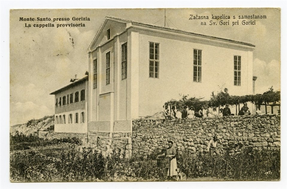 Monte Santo presso Gorizia La cappella provvisoria Za časna kapelica s samostanom na Sv. Gori pri Gorici |