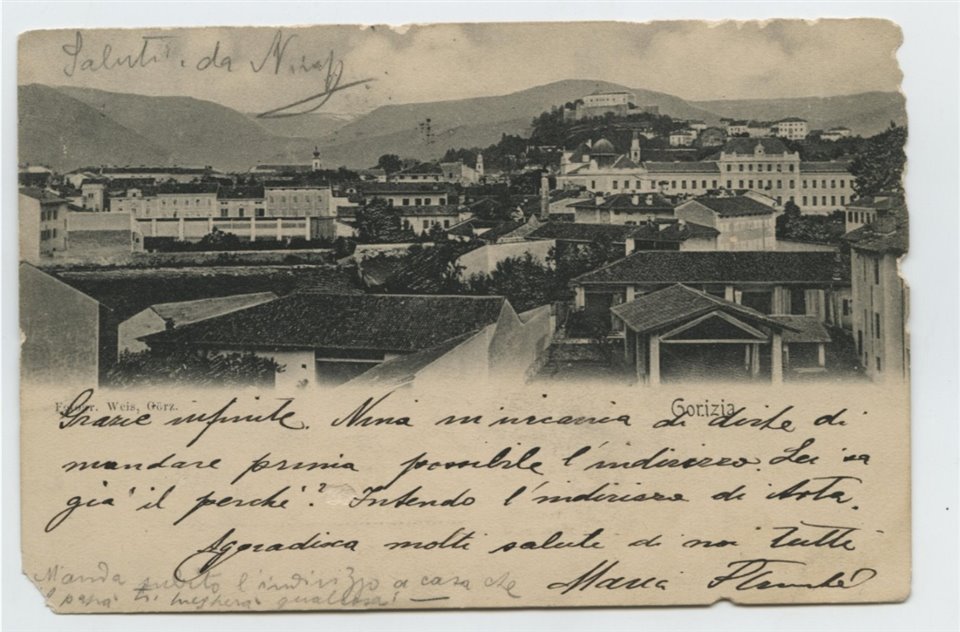| NOTE | Sul recto: "Fotogr. Weis, Görz." Cartolina viaggiata. La ripresa, tradotta in cartolina, risale al periodo in cui Francesco Weiss, dopo essere stato assistente del fotografo Anton Jerkič, lavorò come fotografo itinerante, prima di aprire l'atelier in via Tre Re 16, dove è documentato dal 1907. |
