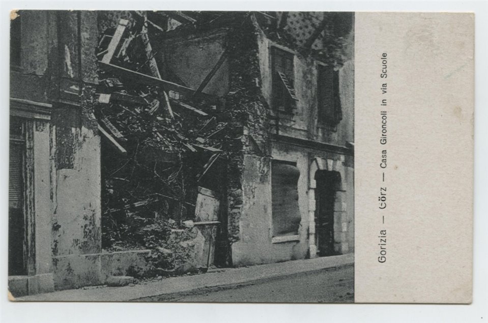 | SOGGETTO | Gorizia - Via Goffredo Mameli (già Via delle Scuole) - Casa Gironcoli - Danni di guerra - Guerra Mondiale 1914-1918 |