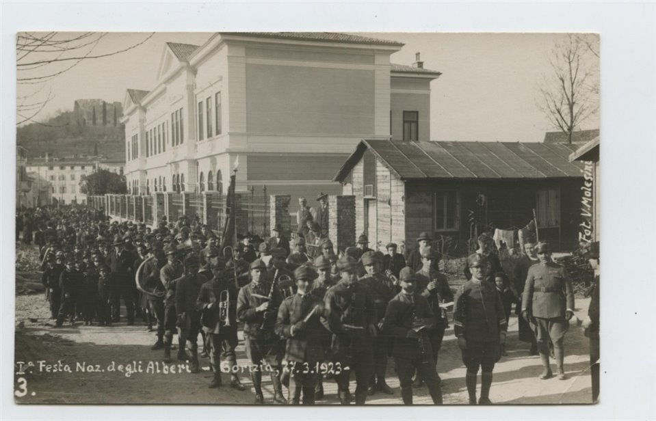 | SOGGETTO | Festa Nazionale degli Alberi - Gorizia - 1923 Gorizia - Via della Cappella - Scuola elementare Fumagalli |