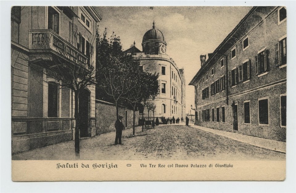 | TITOLO | Saluti da Gorizia - Via Tre Ree [sic] col Nuovo Palazzo di Giustizia |