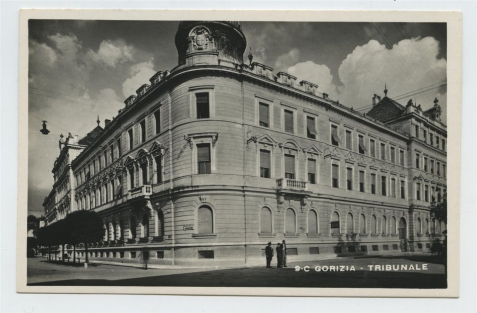 | NOTE | Sul recto, prima del titolo: "9-C". Sul verso: "Ed. A. Cadel - Trieste - Via G. Gallina 1 | Autorizz R. Prefett. Gorizia N. 013096"; "Vera fotografia"; "Foto-Stampa Angeli - Terni". Negativo originale su vetro conservato presso la Fototeca del Consorzio Culturale del Monfalconese (Ronchi dei Legionari). Cartolina non viaggiata. Si nota un cartello affisso all'angolo del Tribunale con la scritta "Al ricovero" e freccia in direzione della via Nazario Sauro. |