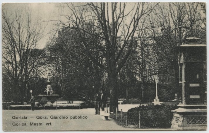 | NOTE | Sul recto: titolo parallelo "Gorica, Mestni vrt." Sul verso: "Fed. De Benigni, deposito cartoline illustrate, Gorizia. 1914"; "7701". Cartolina viaggiata; data del timbro postale illeggibile. |