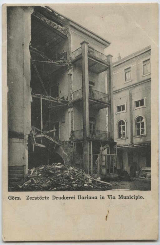 | SOGGETTO | Gorizia - Via Giuseppe Mazzini (già Via del Municipio) - Tipografia Ilariana - Danni di guerra - Guerra mondiale 1914-1918 |