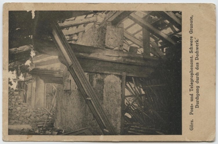 | TITOLO | Görz. Post und Telegraphenamt. Schwere Granate, Durchgang durch das Dachwerk. |