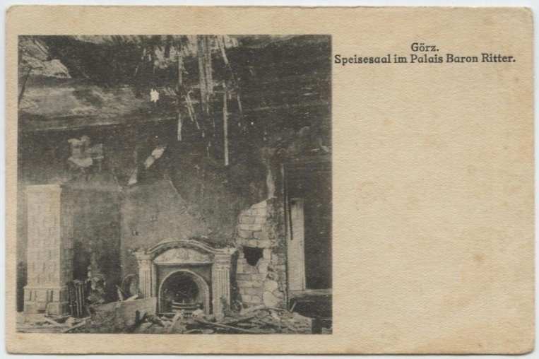 | NOTE | Sul verso: "Verlag : Kartonnage-Fabrik A. Pertot, Görz". Cartolina non viaggiata. Il palazzo Ritter, danneggiato durante la Prima guerra mondiale, non venne ricostruito. |