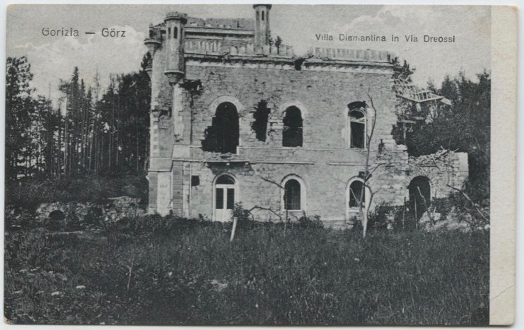 | NOTE | Sul verso: "Verlag Anton Pertot, Kunstkartengeschäft, Görz No. 44 a"; "F 43". Cartolina non viaggiata. Villa Diamantina distrutta nel 1917. |