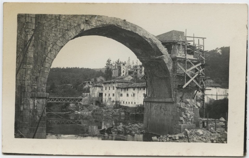 | NOTE | Titolo manoscritto sul verso della cartolina. Per cartolina della stessa serie cfr. inv. 00132. Esemplare non viaggiato. Attraverso l'arcata del ponte ferroviario sul Vipacco si scorge, in posizione elevata, il castello di Rubbia distrutto dai bombardamenti del 1916. Il ponte venne riattato dopo il novembre del 1918. |