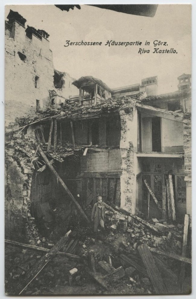 | TITOLO | Zerschossene H äuserpartie in Görz. Riva Kastello. |