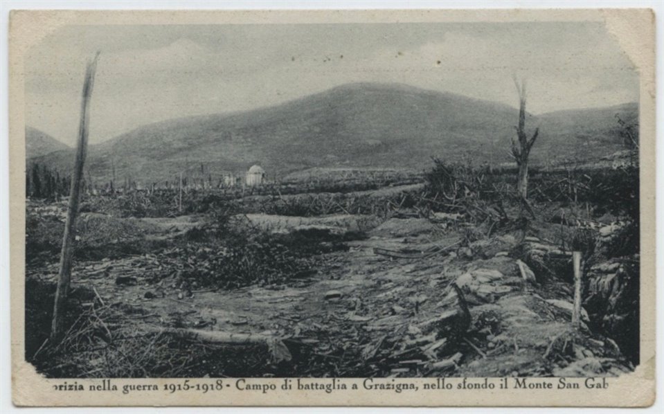 Gorizia nella guerra 1915-1918 - Campo di battaglia a Grazigna, nello sfondo il Monte San Gab[riele] |