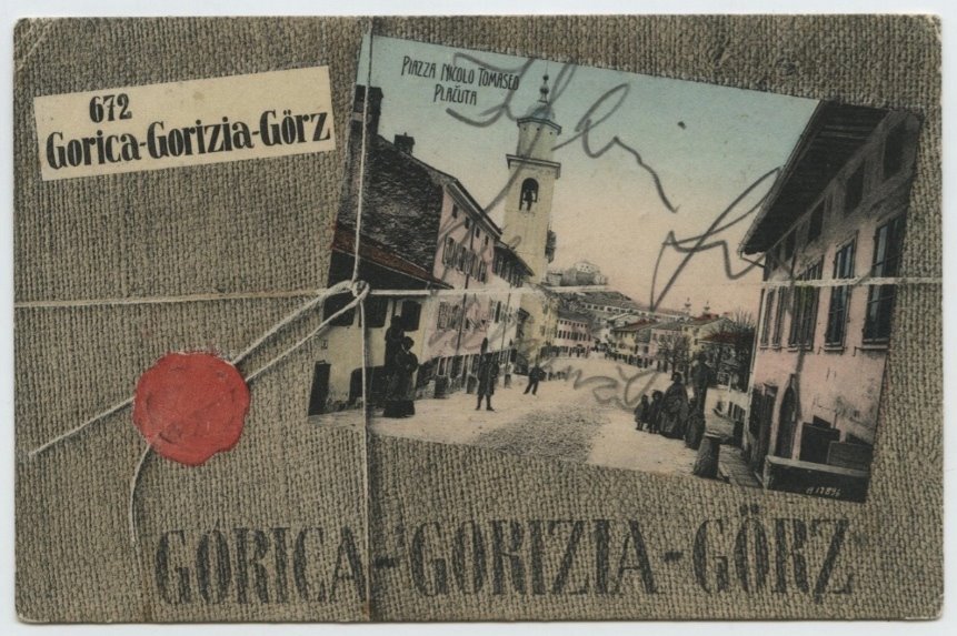 | NOTE | Sul recto: titolo dellavedutina "Piazza Nicolo Tomaseo Plačuta". Sul verso: "A. Gabršček, Gorica". Cartolina viaggiata. |