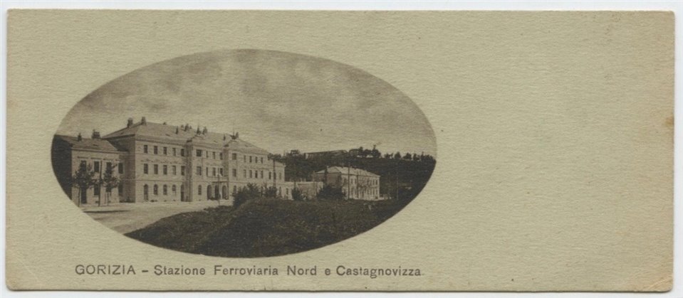| NOTE | Sul verso: "G.C.G." Cartolina viaggiata; francobollo asportato. La Stazione ferroviaria Nord di Gorizia, o della Transalpina, oggi stazione ferroviaria di Nova Gorica in Slovenia, venne costruita nel 1906. |
