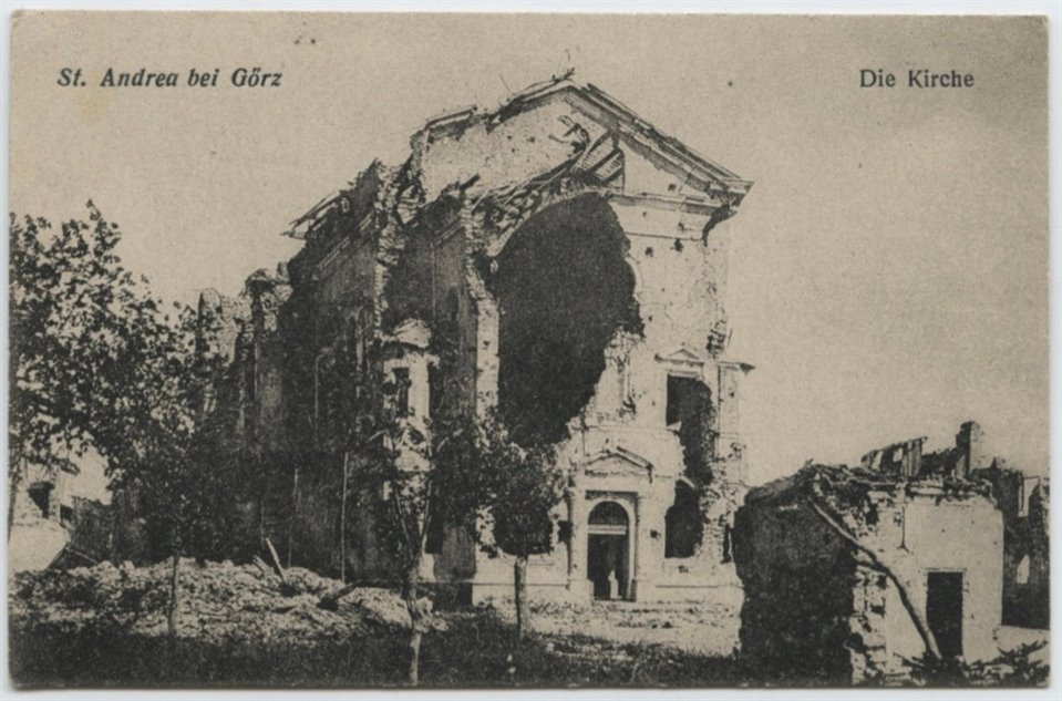 | NOTE | Sul verso: "1698 Verlag Kartonagefabrik Pertot Görz." Cartolina non viaggiata. La cartolina documenta lo stato della chiesa di San'Andrea nell'agosto del 1917. |