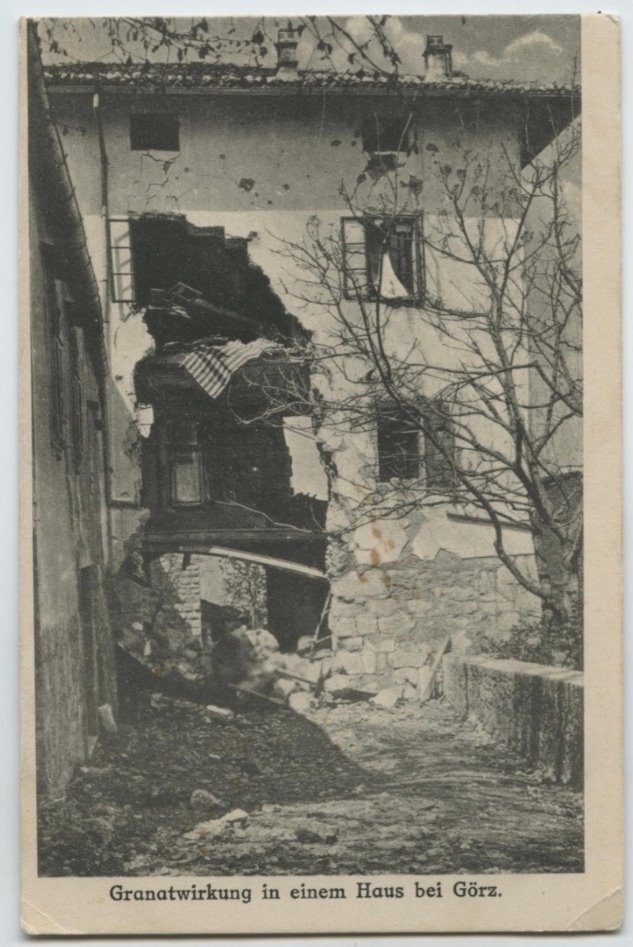 Sul verso: "Verlag Kartonagefabrik Pertot, Görz"; "3281"; "1916 [logo] Kilophot". Cartolina non viaggiata. Per l'identificazione del soggetto cfr. inv. 02708. L'esemplare è pervenuto nell'album contenente cartoline illustrate relative a Piedimonte/Podgora.