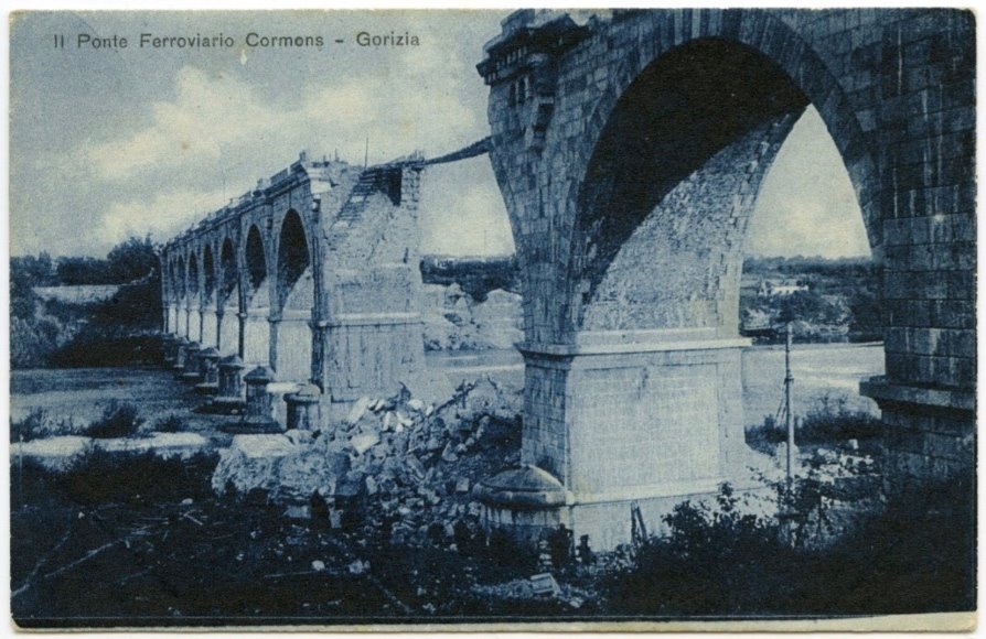 | NOTE | Sul verso: "00138"; "1566 - Uff. Revisione Stampa Milano". Cartolina non viaggiata. Due arcate del ponte della linea ferroviaria Meridionale furono fatte brillare l'8 agosto 1916. |