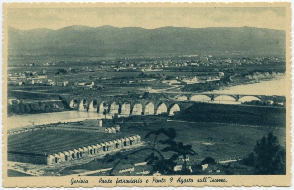 | SOGGETTO | Gorizia - Isonzo - Veduta panoramica Gorizia - Ponte ferroviario Gorizia - Ponte IX Agosto Piedimonte/Podgora (Gorizia) - Cotonificio |