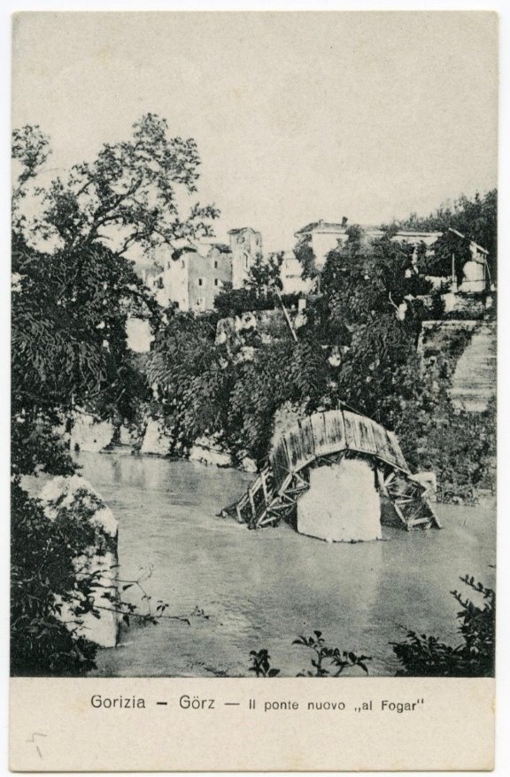| NOTE | Sul verso: "Verlag Anton Pertot, Kunstkartengeschäft Görz, N. 153 a"; "F 80". Cartolina non viaggiata. Era denominato Case Fogar il nucleo di case sulla sponda destra dell'Isonzo all'altezza del ponte del Torrione, andate distrutte durante la Prima guerra mondiale. |