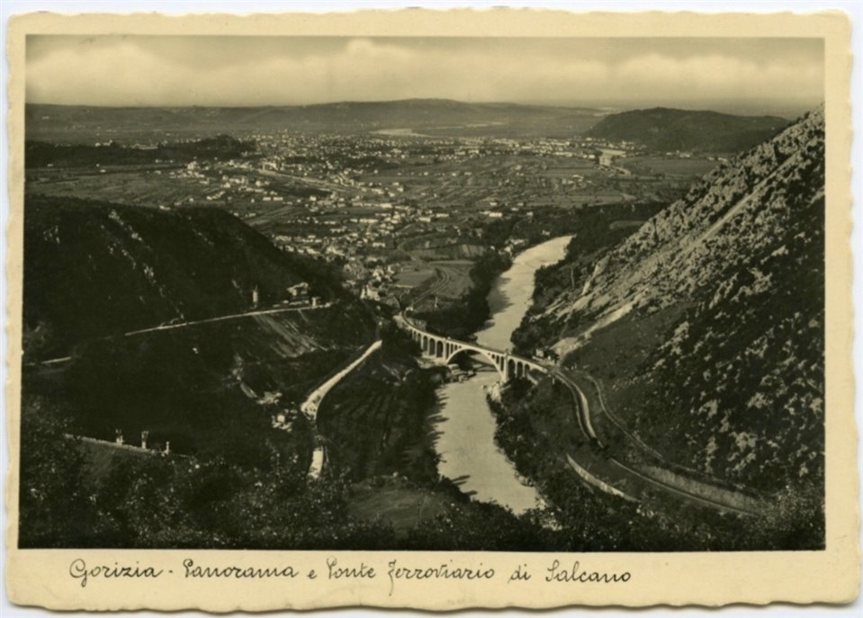 | SOGGETTO | Gorizia - Veduta panoramica dal Monte Santo Salcano/Solkan (Nova Gorica) - Isonzo - Veduta panoramica dal Monte Santo Salcano/Solkan (Nova Gorica) - Ponte ferroviario |