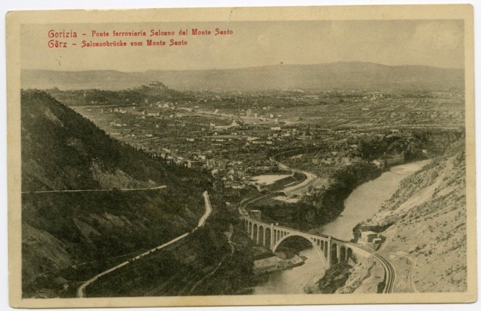 | SOGGETTO | Gorizia - Veduta panoramica dal Monte Santo Salcano/Solkan (Nova Gorica) - Isonzo - Veduta panoramica dal Monte Santo Salcano/Solkan (Nova Gorica) - Ponte ferroviario |