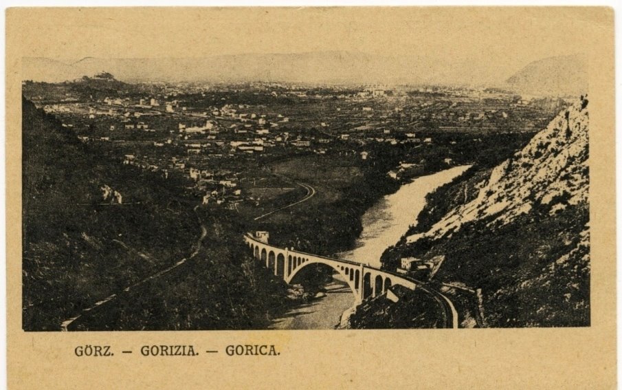 | NOTE | Sul verso: "Fot. Sophie Marega, Görz 1918.". Cartolina viaggiata nel 1919. La ripresa del ponte di Salcano dal Monte Santo è precedente l'agosto del 1916, quando la costruzione venne fatta saltare durante il conflitto. |