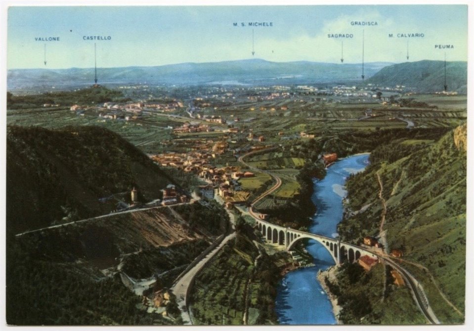 | NOTE | Sul verso: titolo; "[logo] Tecnofoto Gorizia"; "83". Cartolina non viaggiata. La cartolina sul recto indica luoghi di interesse storico-geografico: Vallone, Castello di Gorizia, Monte San Michele, Sagrado, Gradisca, Monte Calvario, Peuma. |