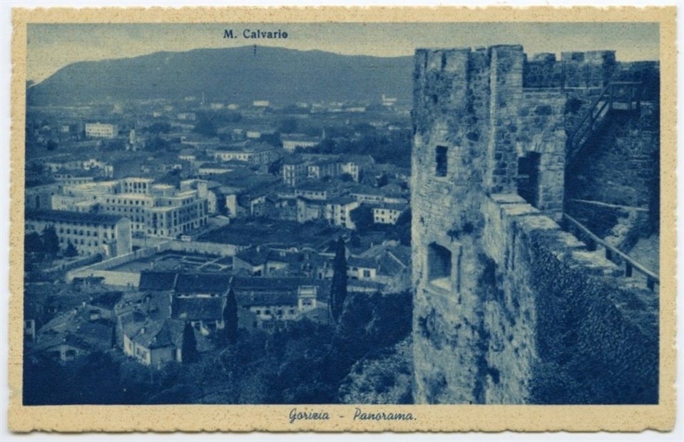 | NOTE | Sul verso: "Ediz. Ris. G. Cumar - Gorizia"; "Stab. Grafico Cesare Capello - Milano"; "12016". Bordi fustellati. Cartolina non viaggiata. La veduta è successiva alla costruzione in via Roma del palazzo dell'INA (1937) visibile in basso, e precedente quella del palazzo dell'INAIL (1938) sull'area adiacente. |