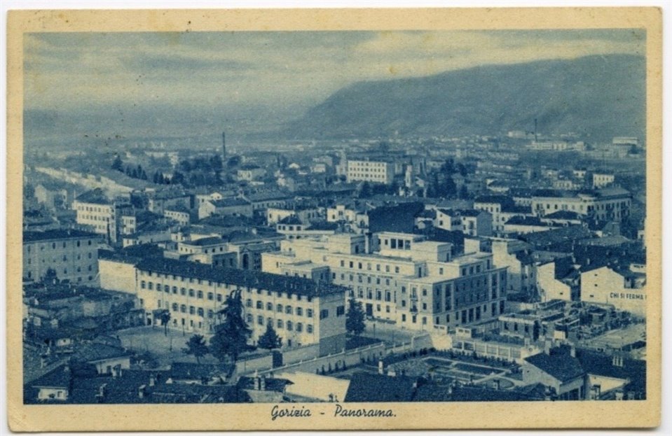 | NOTE | Sul verso: " Ediz. Ris. G. Cumar - Gorizia"; "Stab. Grafico Cesare Capello - Milano". Cartolina viaggiata il 14.06.1949. La ripresa fotografica è successiva al completamento del palazzo dell'INA (1937) in via Roma. La frase 'Chi si ferma [è perduto]' pronunciata da Mussolini è parzialmente leggibile sul muro della casa a destra, dietro il palazzo dell'INAIL in costruzione (1938). |