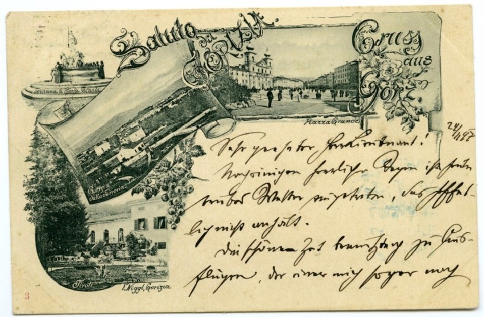 | NOTE | Sul recto: titolo delle vedutine ("Fontana in Piazza Grande"; "Piazza Grande"; "Gorizia dalla Ferrovia"; "Tivoli"); "E. Niggl, Gorizia"; "3". Cartolina viaggiata il 24.11.1897. |